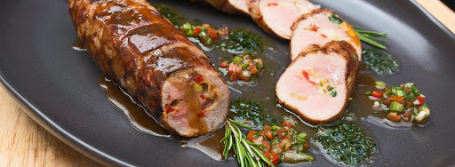 3. Gently roll the pork tenderloin into a cylinder, making sure to keep the filling in the center. Using butcher's twine, carefully tie the pork tenderloin in even intervals. Repeat with remaining tenderloin pieces. Place the tenderloin in the fridge, uncovered, for at least 2 hours, or preferably overnight.