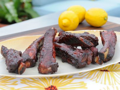 Remove the ribs from the marinade (discard the marinade) and place onto a wire rack. Place the rack directly on the cooler side of the grill. Cook until the meat is very tender, basting with the reserved marinade 3 times during the cooking process, 2 to 3 hours.