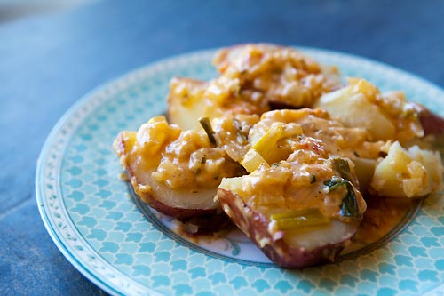 3 If potatoes are not small, cut them in halves or quarters. Spoon the sauce over the potatoes.