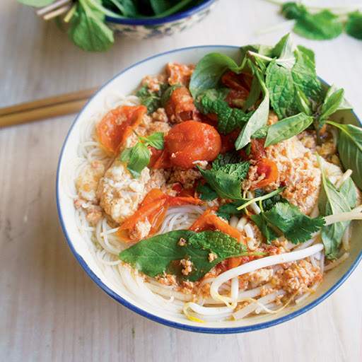vermicelli with boiling water and let stand until softened, about 10 minutes. Drain well. Divide the vermicelli and bean sprouts among 4 bowls. Ladle the soup on top and serve with lime wedges and mint, cilantro and basil leaves.