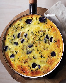 Reduce heat to medium. Pour egg mixture into skillet and stir once; cook, undisturbed, until edge is set, about 2 minutes. Scatter potatoes evenly over egg mixture. Transfer skillet to oven. Bake until edge is puffed and golden brown in places and center is set, about 20 minutes. Let cool slightly before serving.