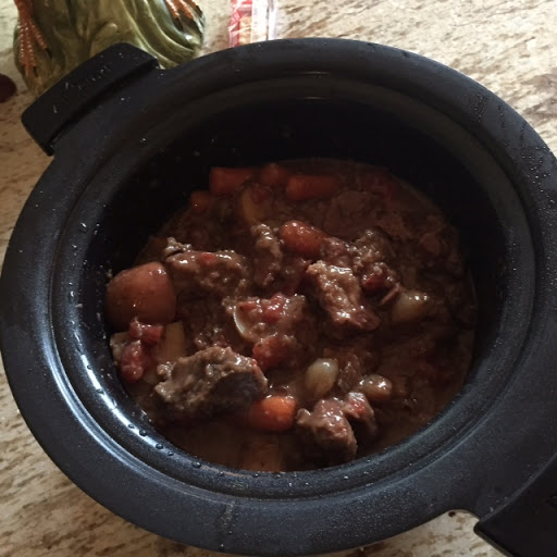 4. Before serving check to see if gravy is thick enough. If you prefer it thicker, mix 3 tablespoons flour with 1/4 cup cold water. Stir into stew. Increase heat setting to High; cover and cook 10 minutes longer or until thickened.