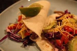 Lay some shredded cabbage as a base. Top with some shredded beef. Serve alongside Guacamole and salsa. Garnish with fresh cilantro leaves.