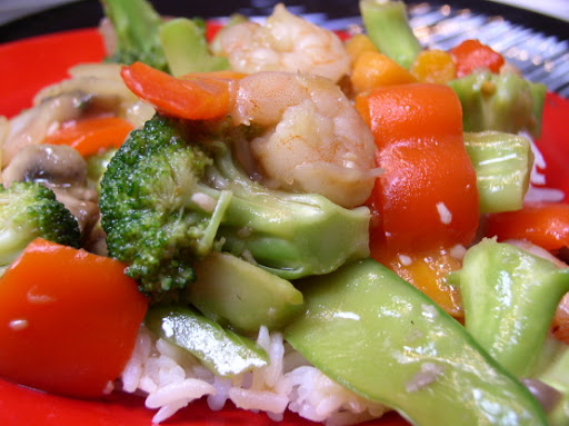 Stir-fry vegetables for approximately 3 minutes, then add the shrimp.