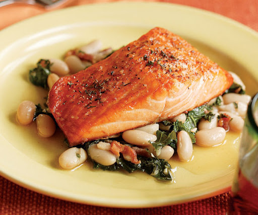 SALMON****Broiled Salmon with a White Bean, Kale & Bacon Ragoût - 7 Points