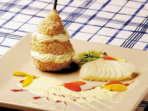 PERAS AL VINO CON CREMA DE ALBAHACA