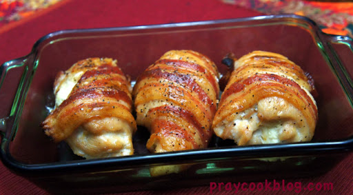 An easy, but elegant main dish! The chicken is moist, the flavor superb and the bacon a perfect wrapping!