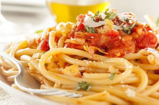 In a large skillet over medium heat, warm up the olive oil. Add guanciale and sauté until crisp and golden, about 4 minutes.