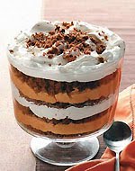 * In a trifle bowl or 3-1/2-qt. glass serving bowl, layer a fourth of the cake crumbs, half of the pumpkin mixture, a fourth of the cake crumbs and half of the whipped topping. Repeat layers. Garnish with reserved cake crumbs. Serve immediately or refrigerate until serving.