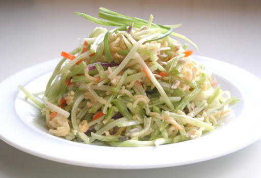 • 2 (3 ounce) bags oriental-flavor instant ramen noodles, reserve seasoning packet for dressing (other flavors will work, too)