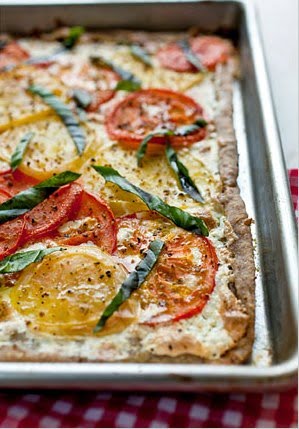 • 2 2 1/4 to pounds ripe tomatoes, sliced about 1/4 inch thick (I like to use a mix of mostly red with some yellow and green tomatoes)