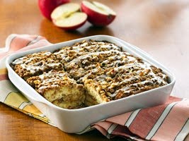 3. Bake about 25 minutes or until toothpick inserted in center comes out clean. Cool in pan on cooling rack 20 minutes. In small bowl, stir glaze ingredients until smooth enough to drizzle. Drizzle glaze over warm coffee cake.