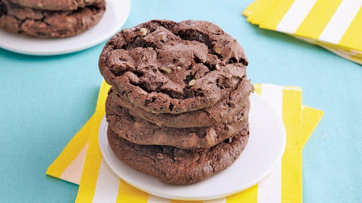 Heat oven to 350°F. In large bowl, beat cake mix, brown sugar, eggs, oil, water and peppermint extract with electric mixer on medium speed until smooth. Stir in baking chips and chocolate chips.
