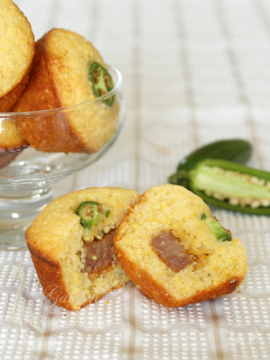 What a wonderful treat, jalapeno corn muffins with a savory sausage surprise inside. Enjoy! I know we did!