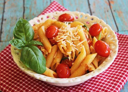 1. Grab a (1 pound) box of penne pasta. Boil some water and cook the pasta according to package directions.