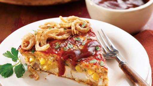 Bake 28 to 32 minutes or until knife inserted in center comes out clean. Brush 2 tablespoons barbecue sauce over top of pie. Sprinkle onions evenly over sauce.