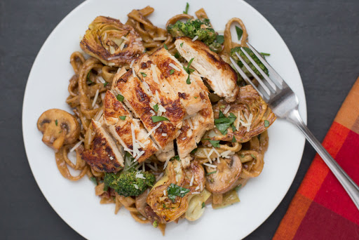 • 9 oz fettucine-style pasta: Cappello’s, rice pasta, or zucchini pasta