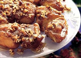 Heat oven to 375°F. In ungreased 8- or 9-inch round cake pan, place butter, brown sugar and syrup. Place in oven 2 to 4 minutes or until butter melts. Mix well; sprinkle with pecans.