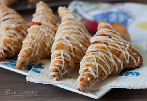 Put a spoonful of filling in the middle of the square and fold the top triangle over the bottom triangle.