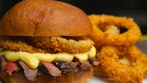 Assemble the sandwiches by placing ¼ of the sliced steak on each bottom bun, top with cheese sauce and 2-3 onion rings, and add the top bun. Serve along with extra onion rings.