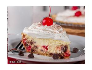 Set aside 8 cherries for garnish, then coarsely chop rest. Add chopped cherries and chocolate chips to cream cheese mixture; mix well, then pour into pie crust.
