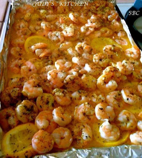 Put down fresh shrimp, then sprinkle one pack of dried Italian seasoning. Put in the oven and bake at 350 for 15 min.
