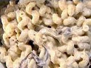 Combine the pasta, sauce, and mushrooms in a large bowl and pour them into a 10 by 13 by 2-inch baking dish.