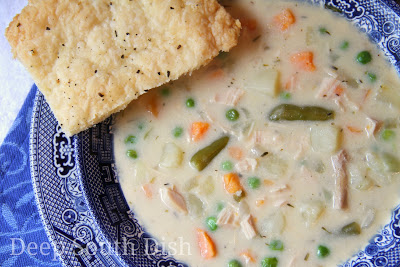Chicken Pot Pie Soup with Pie Crust Crackers