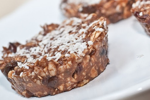 Mash banana in a medium sized bowl (I use a potato masher!). Add cocoa powder, peanut butter, and maple syrup and stir until fully mixed. Now stir in oats, cacao nibs, and rice crisp. Divide into 4 Glo Cakes by spooning the batter into a muffin liner or just in a muffin tin. I used an ungreased muffin tin and I had no problems getting them to come out. Sprinkle with coconut and place in the freezer for 60-80 minutes. Do not over-freeze them. You want them a bit chewy. They will however melt quite fast so please serve immediately.