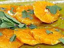 Peel oranges and slice into 1/4-inch thick slices. Place on a serving platter.
