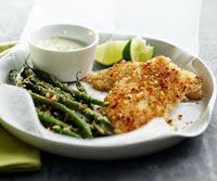 3. Remove fish from pan. Toss beans with the panko that remains in baking pan. Sprinkle with 1/4 cup panko. Serve with remaining wasabi mayonnaise and lime wedges.