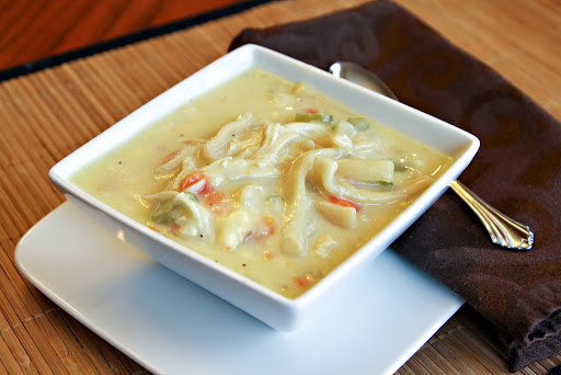 Perfect soup for a cold winter day! Creamy chicken noodle soup adds cream of chicken soup and some milk to a basic soup to make it even more comforting. Serve with crackers.