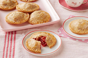 Heat oven to 400ºF. Spoon fruit mixture onto centers of 12 pastry rounds, leaving 1/2-inch border around edges; brush borders with egg. Cover with remaining pastry rounds; seal edges with fork. Cut slits in top crusts; brush with remaining egg. Place on parchment-covered baking sheet; sprinkle with coarse sugar.
