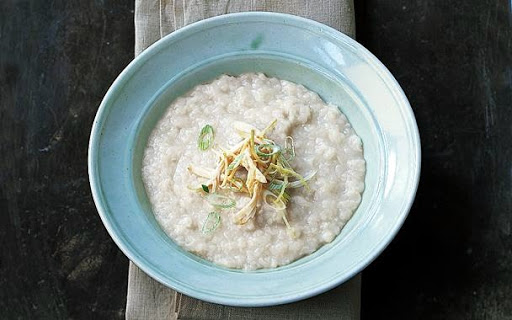 • Also known as jook, congee turns up in Chinese households morning, noon, and night. This thick rendition is made heartier with the addition of chicken.
