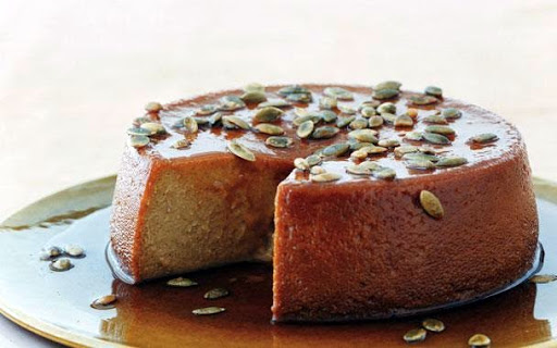 Sprinkle flan with spiced pumpkin seeds just before serving.