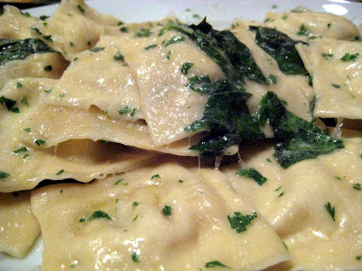 Bring salted water to boil. Drop the ravioli in and cook 3-5 minutes, until tender and fully cooked. Meanwhile, in a 12 to 14-inch saute pan, heat the butter until melted and bubbling. Emulsify with some of the pasta cooking water. Remove ravioli from cooking liquid, drain and add to saute pan. Add a handful of parsley and a few leaves of torn basil. Grate pecorino into the pan and toss over heat 1 minute to coat, and serve immediately with additional pecorino as needed.