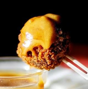 FOR STEP 2: Roll the already fried balls in blended egg and water then roll in combined panko and pecans and fry until golden and crispy. Drain on paper towels. Serve hot or room temp for an appetizer with the dip.