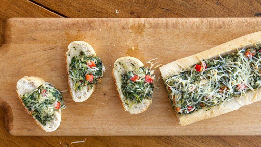 Bake 15 minutes; sprinkle with remaining 2 tablespoons shredded Parmesan cheese. Bake 3 to 5 minutes longer or until spinach filling is hot and bread is deep golden brown. Cool 5 minutes. Cut into slices to serve.