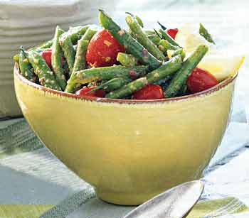Green Bean and Grape Tomato Salad with Kalamata Vinaigrette