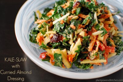 Kale salads can be quite versatile. Try another thick, creamy nut- or seed-based dressing, such as Citrus Tahini Dressing, Creamy Cumin-Spiced Dressing, or DJ’s Hummus Salad Dressing. The key is to coat the leaves nicely, and let the salad sit for ten minutes (or a little longer) before serving, to give the kale a chance to slightly soften in the dressing. You can also massage the kale leaves by hand before adding the dressing, to help soften the tougher leaves.