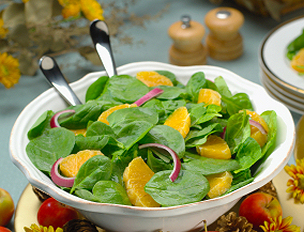 This salad is as pretty as it is delicious. Prepare the dressing and the ingredients in advance, then toss with spinach right before serving.