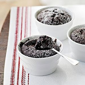 Place butter in a large bowl; beat with a mixer at medium speed 1 minute. Add granulated & brown sugars, beating until well blended (about 5 mins). Add egg substitute and vanilla, beating until well blended. Fold flour mixture into sugar mixture; fold in chocolate. Divide batter evenly among 10 (4 oz) ramekins; arrange ramekins on a jelly-roll pan. Cover and refrigerate 4 hours or up to 2 days.