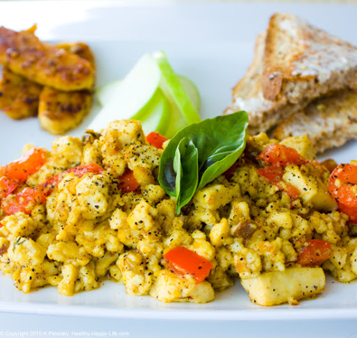 10) Plate with: tempeh bacon, fresh fruit and sprouted grain toast. The toast is a must! This is scrambled eggs guys! Have a fabulous morning...or evening.