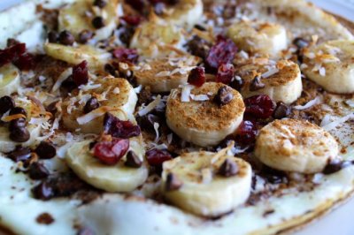Top with banana, chocolate chips, coconut...whatever your heart desires and place back under the broiler for 2-3 minutes until chocolate chips are melted and/or the coconut flakes are toasty.