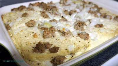 5. Once your two layers are complete, add the egg mixture by slowly pouring it over the layers in the lasagna pan. Cover loosely with tin foil and refrigerate overnight.