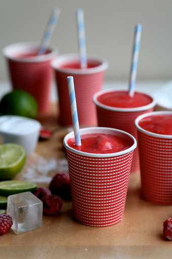 I've found that these slushies can also be blended, divided into cups, and frozen overnight. The consistency will be different, much more of an ice-y than a slushy. In this case serve with a spoon.