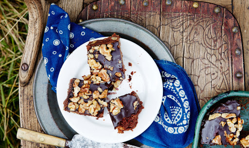 Pour glaze over brownies and top with walnuts, if using. Chill until glaze is set, at least 1 hour. Slice into 12 brownies.