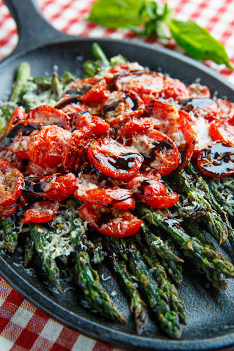 Balsamic Parmesan Roasted Asparagus and Tomatoes