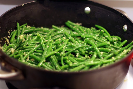 Heat oil in large pan over medium heat. Add garlic, ginger and beans. Stir to coat and heat through. Salt, if desired.
