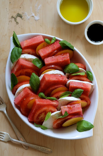 Watermelon Peach Caprese Salad